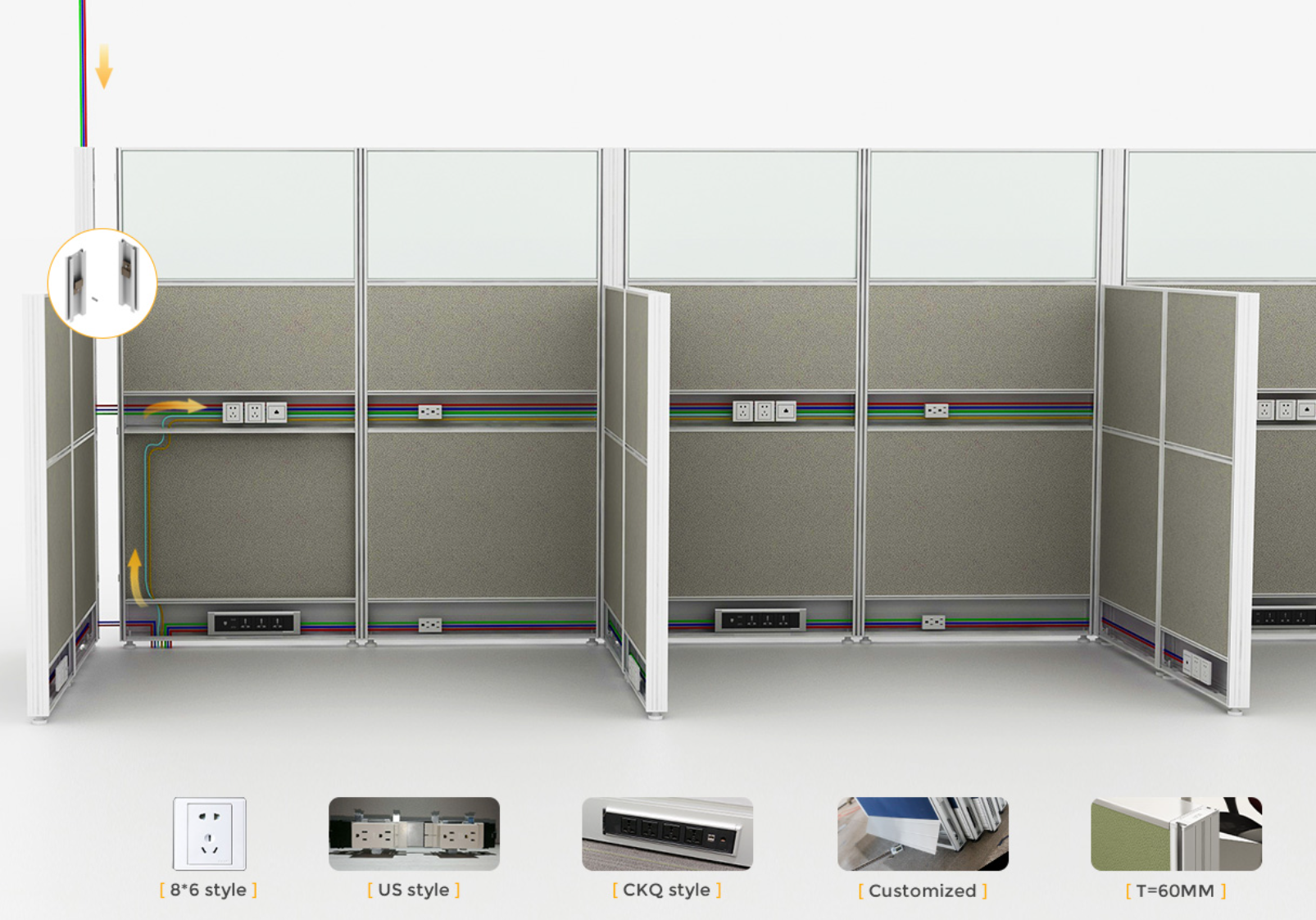 Ergonomics is another critical factor that directly impacts employee productivity and well-being. For small office cubicles, prioritize a minimum 60cm table depth—this provides enough space for dual monitors, a keyboard, and essential office supplies without cluttering the workspace. Look for cubicles with integrated ergonomic features, such as adjustable height options for standing work, built-in wrist rests, and under-desk storage to keep work surfaces clear. Additionally, integrated power outlets and cable management systems eliminate messy wiring, reduce safety hazards, and keep the office looking tidy—a must for small spaces where clutter can quickly become overwhelming.
